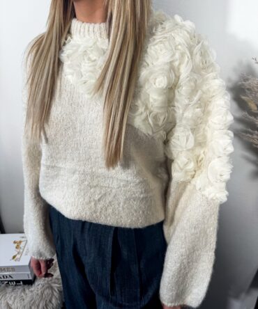 White Romantic Rose Sweater
