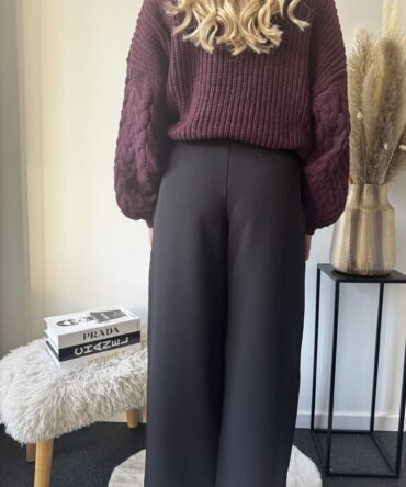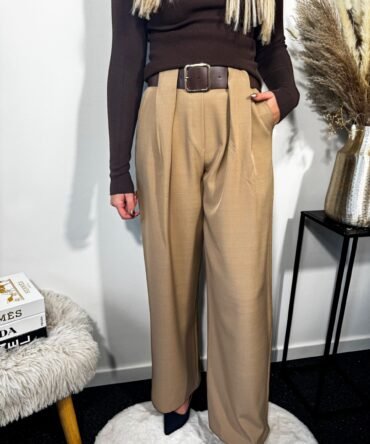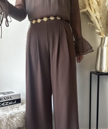Chocolate Brown Wide Leg Trousers with Gold Statement Belt