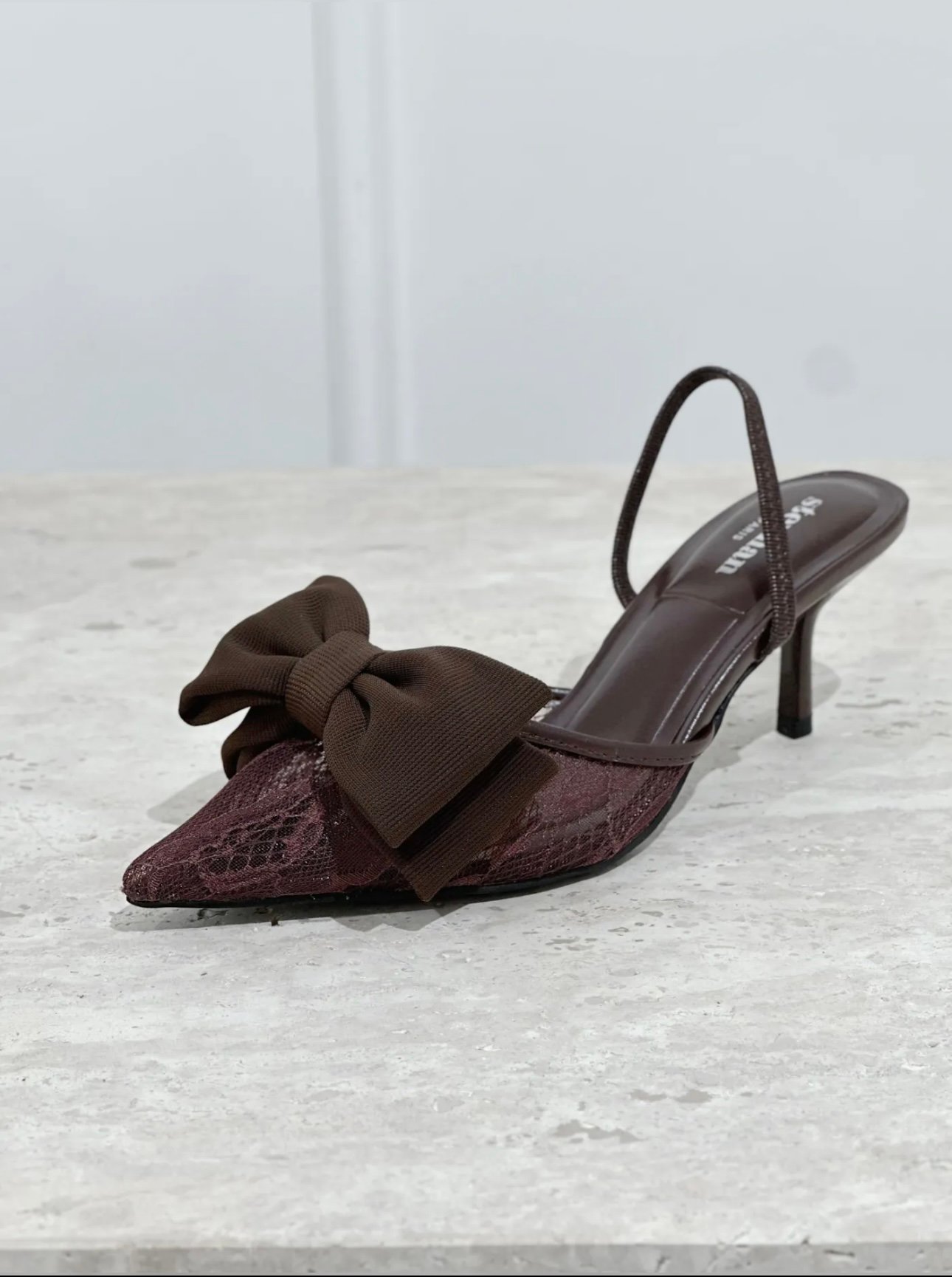 Lace bow heels brown